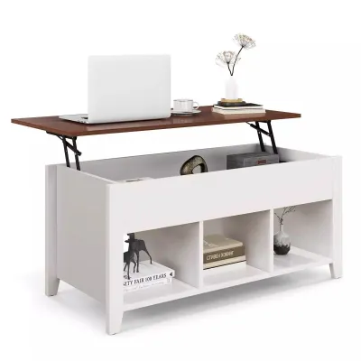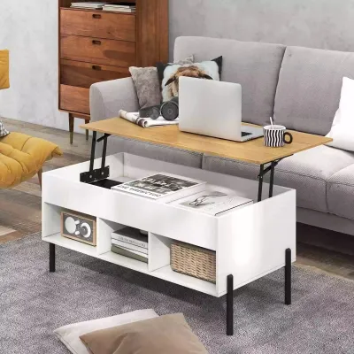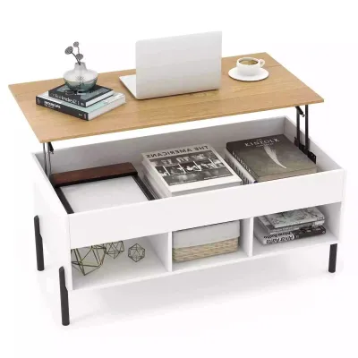 Lift Up Coffee Table Rising Center Table w/ Hidden Compartment & 3 Cubes