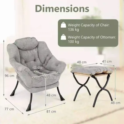 Lazy Chair w/ Ottoman Sherpa Lounge Accent Chair w/ Folding Footrest for Bedroom
