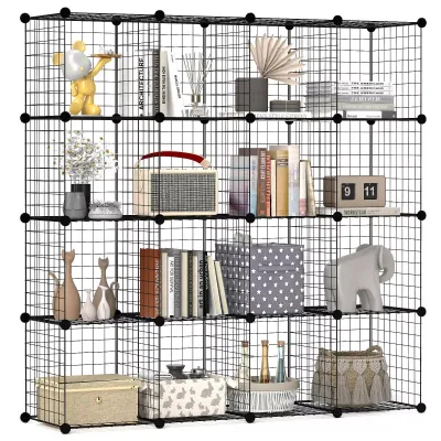 16 Cubes DIY Organizer Wire Cube Stackable Storage Shelves Modular Bookshelf