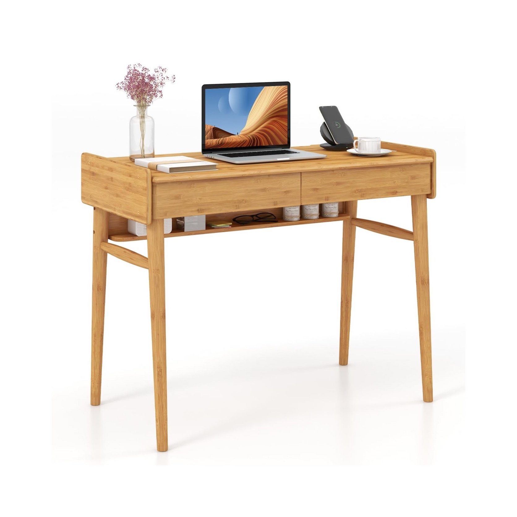 2-Tier Modern LED Coffee Table w/ 20 Color LED Lights Storage Drawers