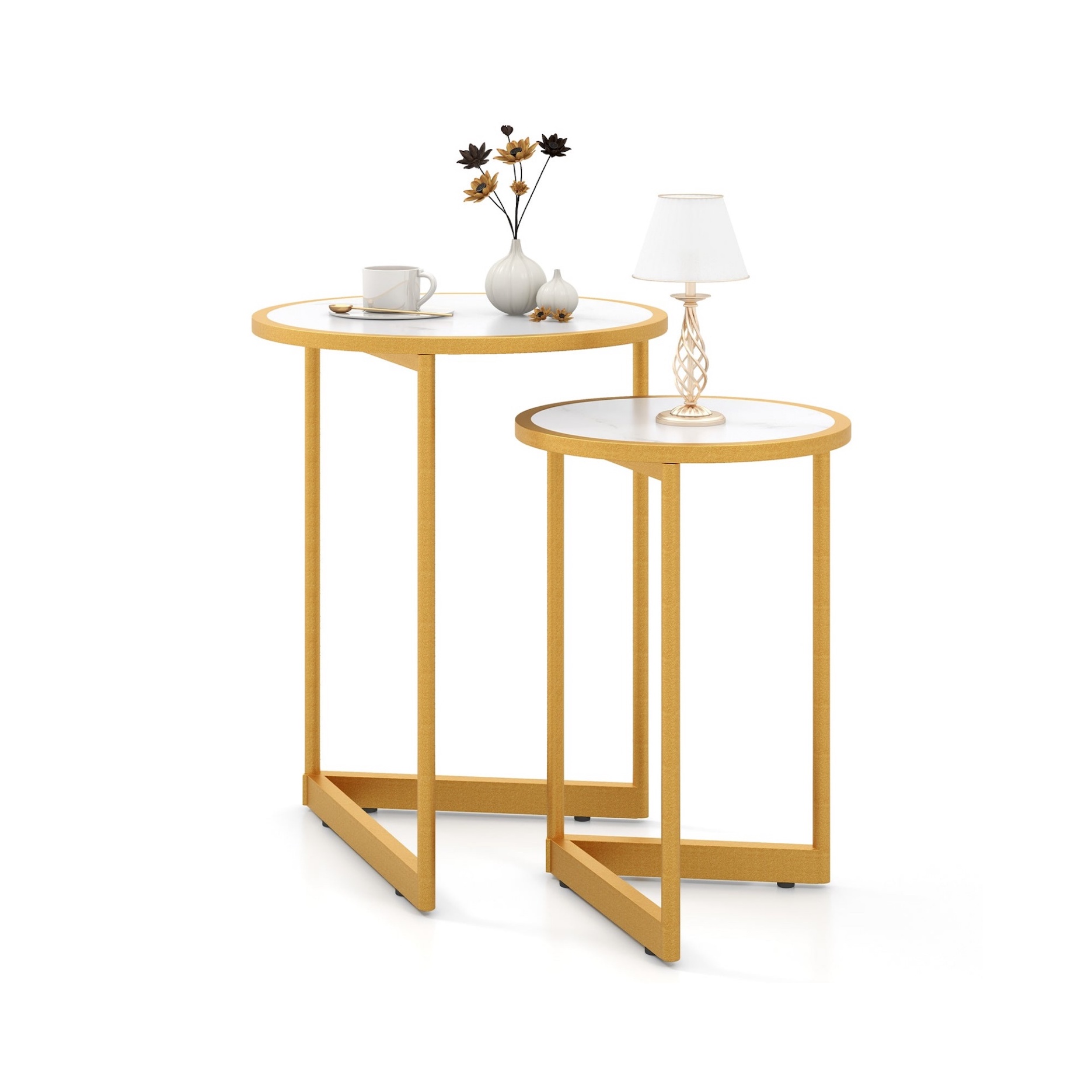 Round Coffee Table Set of 2, 55cm & 65cm Nesting Coffee Tables with Heavy-Duty Metal Frame